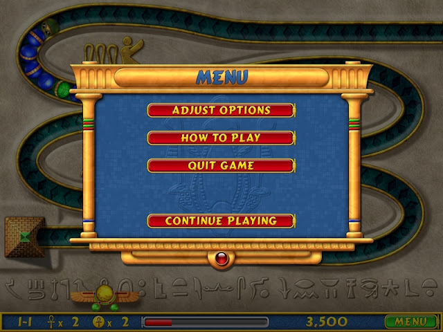 Durante a jogabilidade, as esferas na tela avançam continuamente, empurradas por pequenos escaravelhos adicionais.